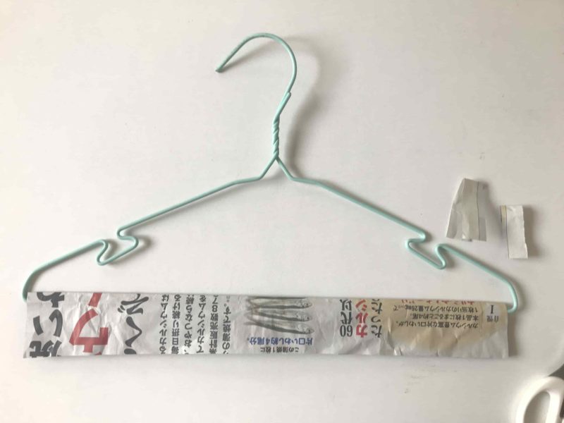 野菜が直接ハンガーに接触しないように、上の写真のようにハンガーの長さに合わせて新聞紙を切り、ひっかけておきます。