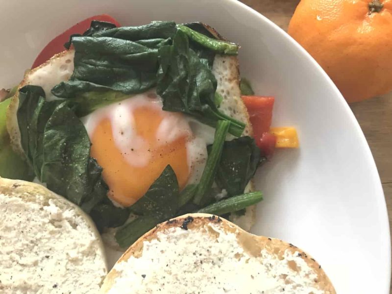 ほうれん草をかけたところ