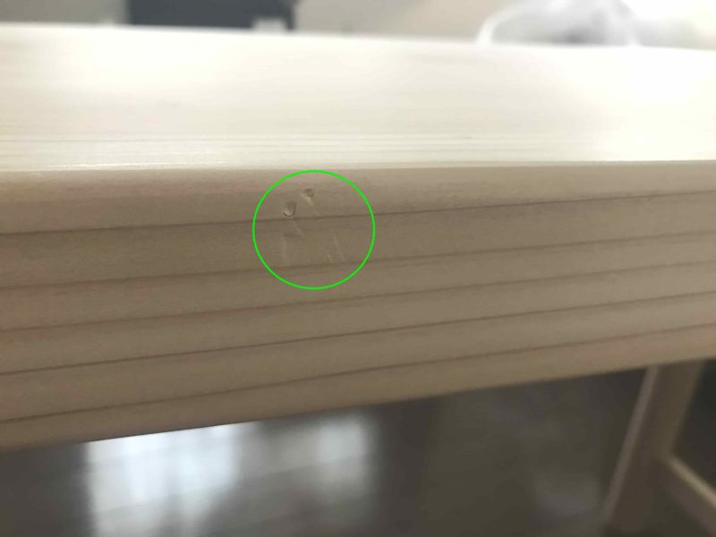 見ていくと小さな傷やシミのように見えるものもあります。傷やシミは木に元からあったものや製作時についたものなど色々だそうです。
